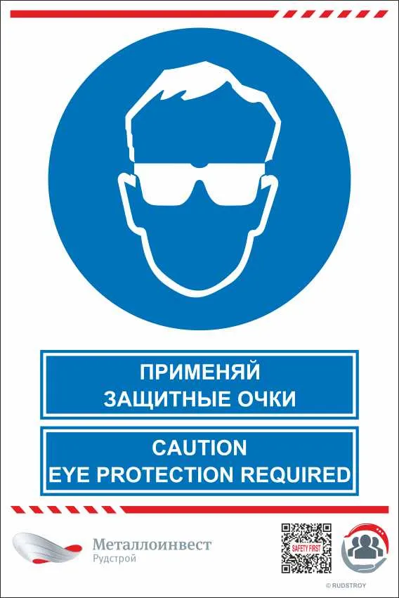 Мультиязычный знак безопасности - Применяй защитные очки